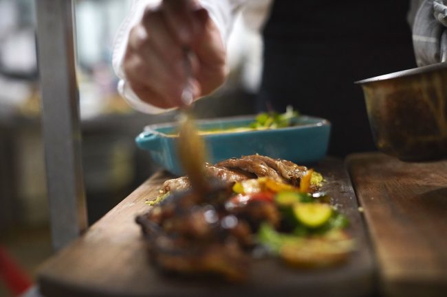 Kalahari kudu with biltong spice and slow-cooked beetroot purée, Soet patat, aniseed rusk and carrot croquette topped with au jus. Wine: IONA One Man Band Red Blend 2016