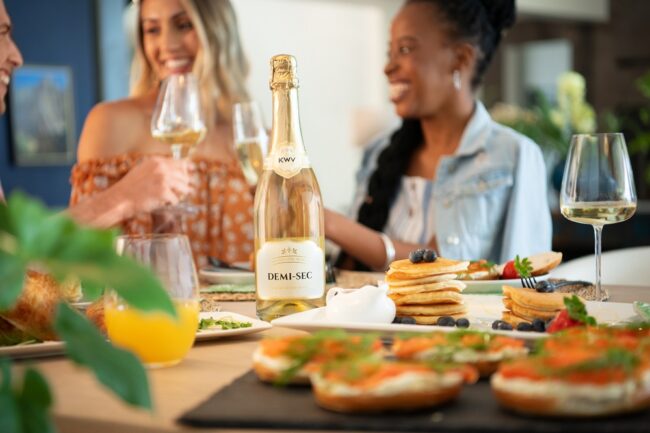 A blissful bubbly brunch with family and friends is the perfect time to pop the cork. You can serve up a glorious spread in no time with a stack of delicious crumpets adorned with sweet and savoury toppings. Think platters of fresh fruit, lashings of smoked salmon, and crispy bacon drizzled in syrup – all enlivened with ample flutes of KWV Sparkling Wine of course!