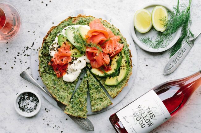 The Spier Yellowwood Organic Rosé has beautiful flavours of violets, mulberry, juicy red plum and subtle spice, and is the perfect partner to this fragrant frittata.