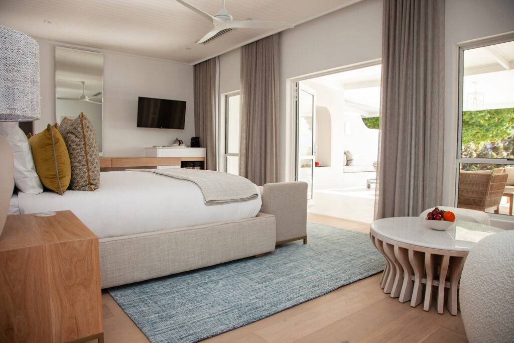 A favoured destination in Franschhoek because of its record of impressive guest experiences, its location and the views, La Petite Ferme, a luxury Cape winelands boutique hotel and wine estate, recently refurbished the estate’s Manor House to bring it in line with the same level of luxury as the existing and popular, Vineyard Suites. Four months of extensive renovations saw its four suites being completely overhauled, and the addition of a fifth suite. Previously known for its Cape Vernacular style with reed ceilings on the verandah and traditional furnishings and décor, the interiors are now far more contemporary and upmarket. Modern, crisp white ceilings were installed, traditional window frames and doors were replaced with aluminium, the flooring was redone and new state-of-the-art air-conditioning was installed. All the bathrooms received a complete makeover with top-end, luxury fixtures and fittings installed. Each of the five suites – with a private terrace and individually decorated in a theme from different regions of the world – was named in honour of people who have inspired the owner of La Petite Ferme – John & Carol, Foufi, Helene, Andre and Sryani. All the suites offer luxuries and carefully considered conveniences such as underfloor heating in the bathrooms, heated towel rails, Wi-Fi, smart televisions, under roof terraces and air-conditioning. The exterior also had a complete overhaul with the original style and appeal being retained – verandahs were re-done, the shared pool was enlarged, resurfaced and modernised, also the hard landscape. In a setting characterised by majestic mountains and vineyards, the aim was to distil the allure that comes with airy, outdoor luxury of international standard. In addition to accommodation, La Petite Ferme produces world-class, hand-crafted wines and is home to an award-winning restaurant. Situated less than three minutes from the village of Franschhoek, La Petite Ferme, a member of The Nest, is the perfect getaway for both summer and winter escapes. Ts & Cs apply. La Petite Ferme – Enquiries/Reservations: accommodation@lapetiteferme.co.za, www.lapetiteferme.co.za